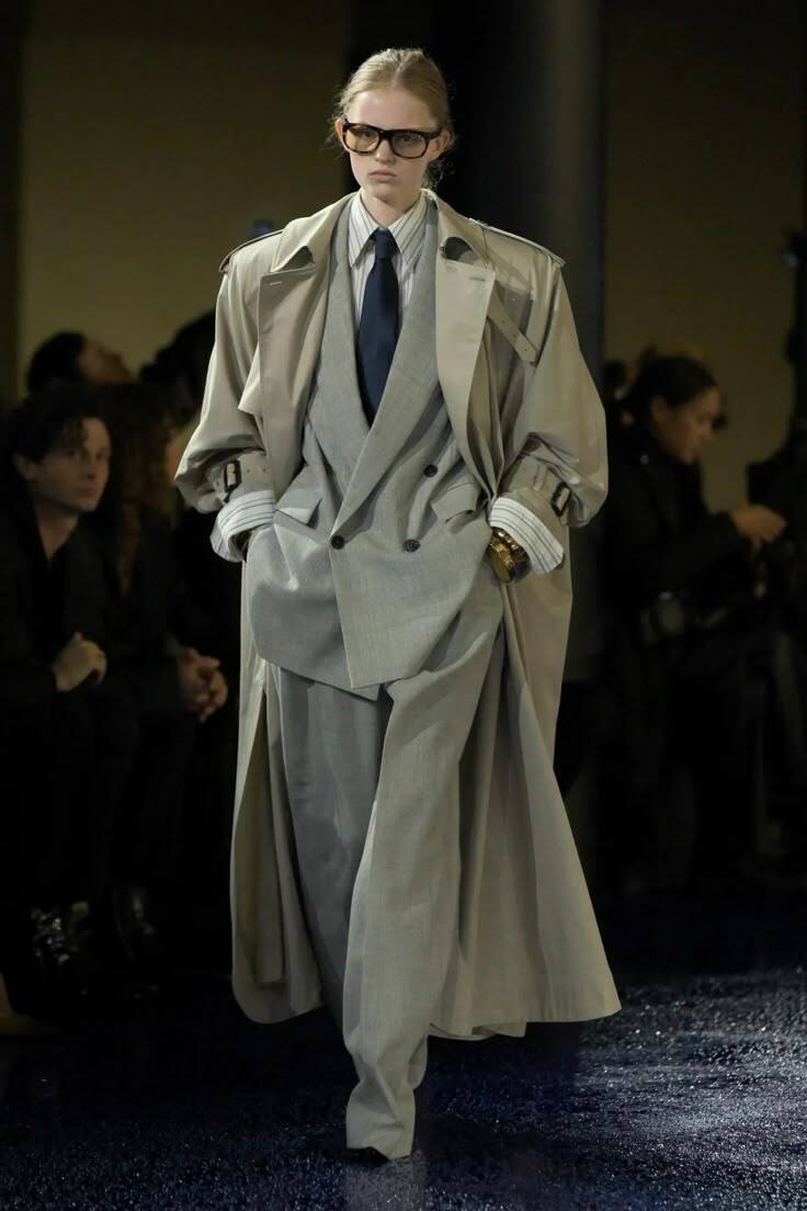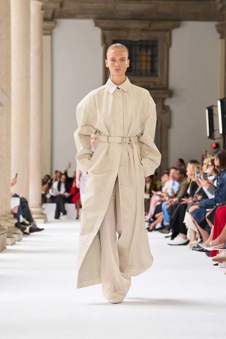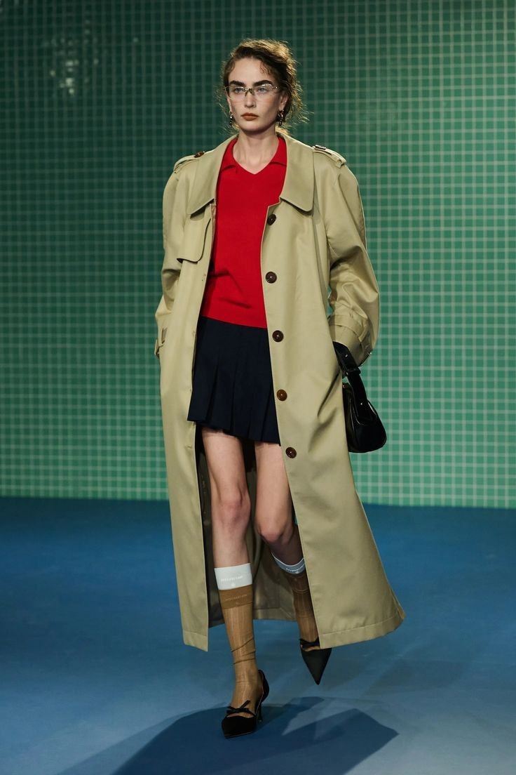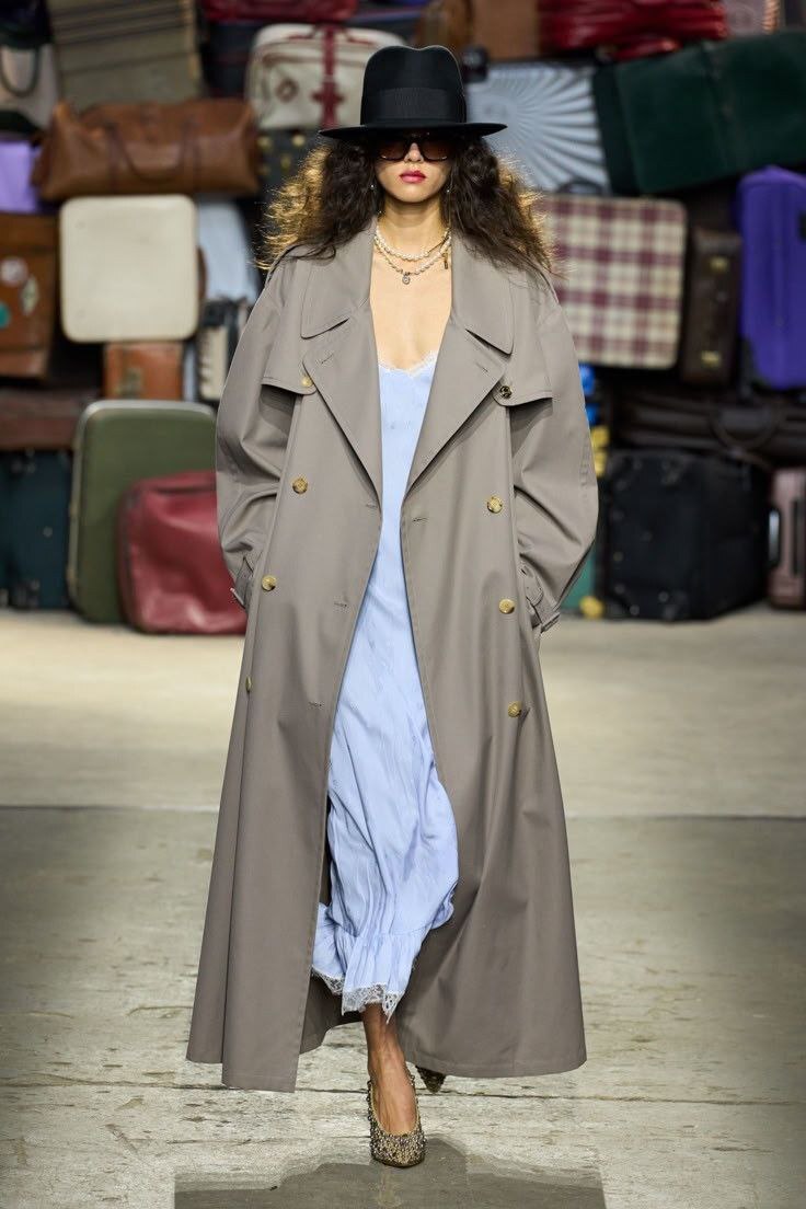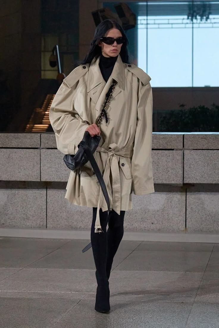 Если вы категорически не хотите быть похожей на окружающих, то советую обратить внимание на укороченные тренчи, которых так же на подиуме Весна-Лето 25 было достаточно.
