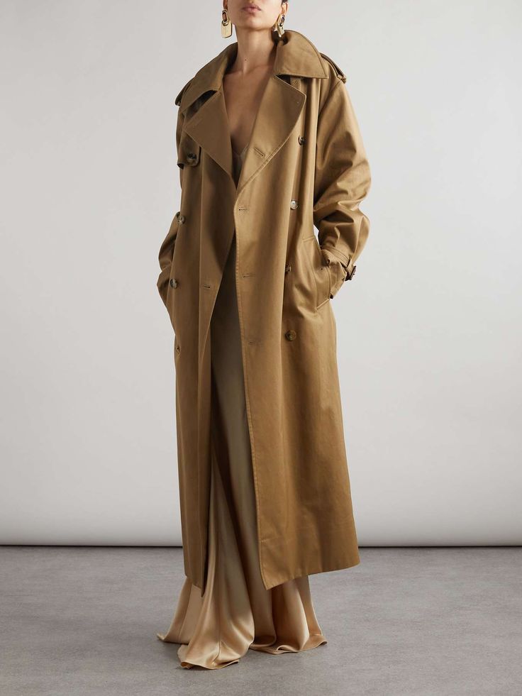 Особенно актуально смотрятся те тренчи, линия плеч которых спущена, а талия подчеркнута.